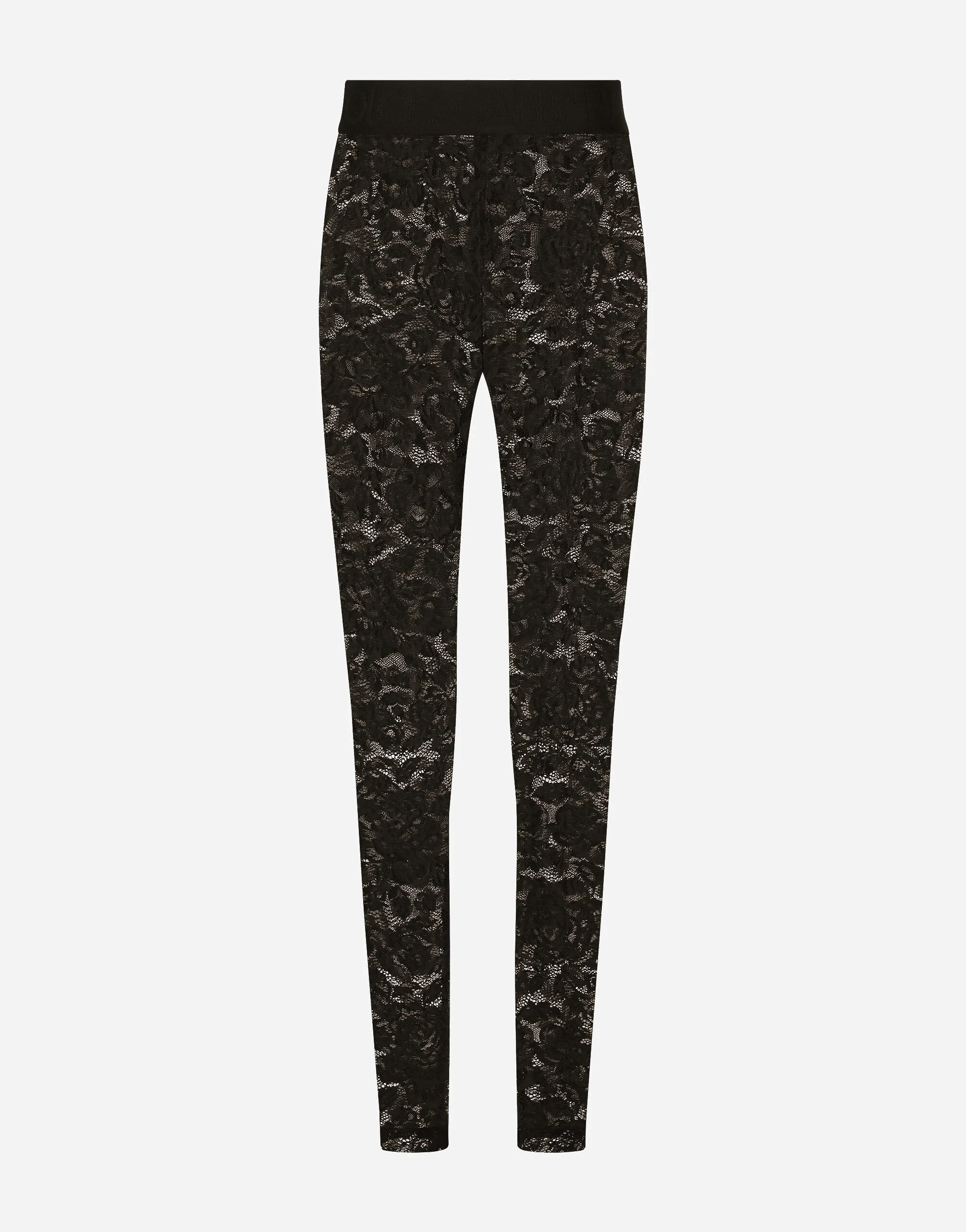 Floral lace-stitch leggings: • Black • Regular waist with branded elastic • Inner leg: 70.5 cm • Hem: 11 cm • Rear zipper and hook-and-eye fastening • The model is 175 cm tall and wears a size IT 40 • Made in Italy Care And Details External composition: 60% Polyamide 30% Viscose 10% Spandex