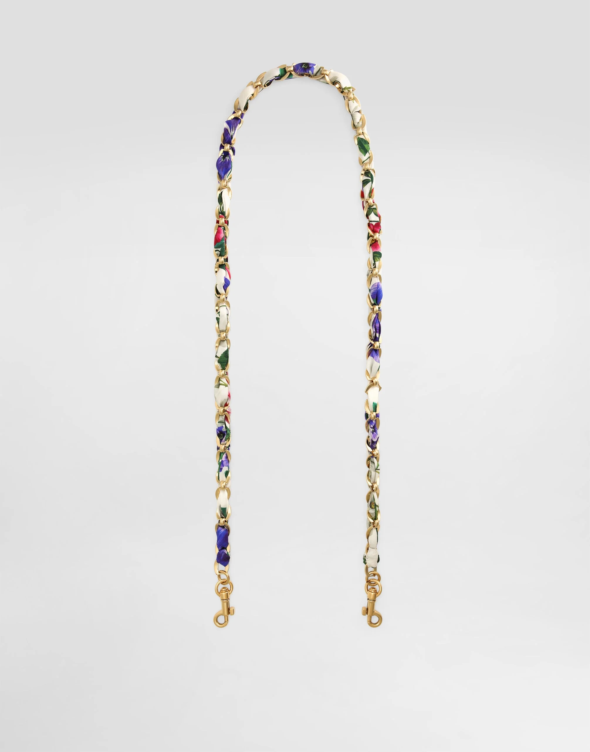 Perfect for embellishing the collection’s bags, this new shoulder strap is made of chain with twill. Bejeweled chain strap: • Gold • Measurements: H0 x W68 x D0 cm • Item comes with a branded dust bag • Made in Italy External composition: 100% Silk