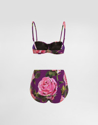 The Women’s DNA Collection is introducing a new side to femininity, which comes in shades of rose quartz, poised between sheerness and opacity, lightness and structure, formality and sensuality. Geometric Dolce Jackets, jacquard pajamas and floral brocade dresses intertwine with ultra-romantic designs. The DG print becomes an iconic statement, while Cordonetto lace and hints of Sicily Black embody the essence of a determined yet romantic femininity. Rose-print balconette bikini top and high-waist bottoms: • Multi-colored • Bikini top with padded cups and underwiring • Adjustable and detachable straps • Branded rear fastening in nickel-free metal • High-waisted bottoms • DG logo in nickel-free metal on the front • Matching PVC pouch • Made in Italy The difference in the print placement that you may find on this product is a feature of Dolce&Gabbana’s “Handmade” pieces. A detail that makes every garment or accessory unique and exclusive. External composition: 72% Polyamide 28% Spandex Internal composition: 88% Polyamide 12% Spandex
