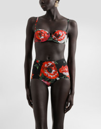 This bikini offers a sleek and sophisticated design that is perfect for those looking for style and comfort at the beach. Padded bikini with flower print: • Multi-coloured • Padded balconette • With detachable straps • High-waisted bottoms • DG metal logo on the hip • Made in Italy The difference in the print placement that you may find on this product is a feature of Dolce&Gabbana’s “Handmade” pieces. A detail that makes every garment or accessory unique and exclusive. External Composition: 74% Polyamide, 26% Elastane Internal Composition: 88% Polyamide, 12% Elastane