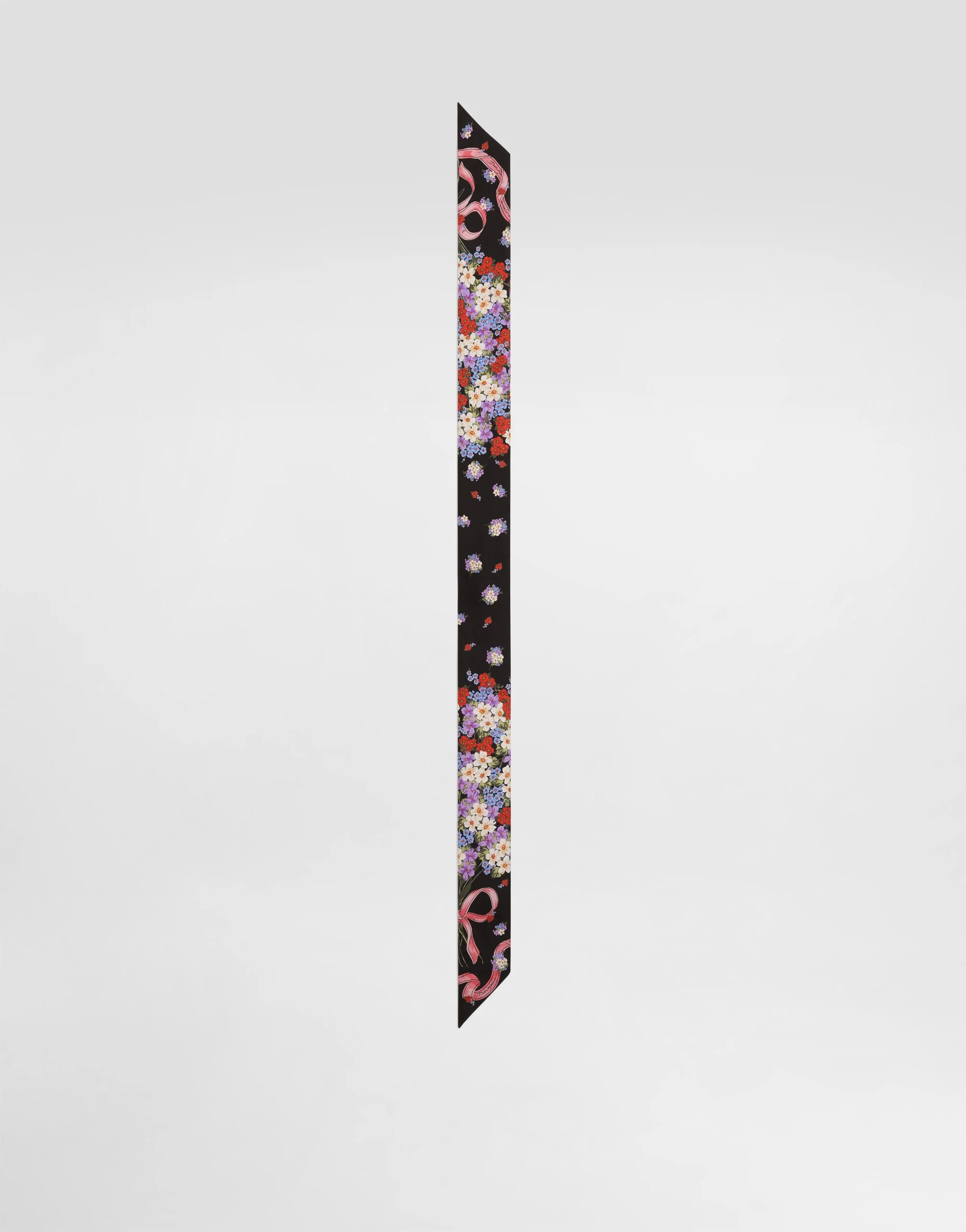 This silk twill stole is a versatile and classy accessory, perfect for adding a touch of elegance and color to any outfit. The design offers endless possibilities for combination, making it a must-have in any woman's wardrobe. Small floral-print silk twill bandeau: • Multi-colored • Measurements: 6 x 100 cm • Made in Italy The difference in the print placement that you may find on this product is a feature of Dolce&Gabbana’s “Handmade” pieces. A detail that makes every garment or accessory unique and exclusive. External Composition: 100% Silk