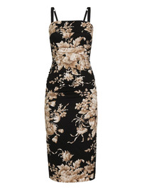 floral-print ruched midi dress Highlights - Black - Floral print - Ruched bodice - Adjustable shoulder straps Made in Italy Composition Silk 95%, Spandex/Elastane 5% Washing instructions Read Manufacturer Guidelines