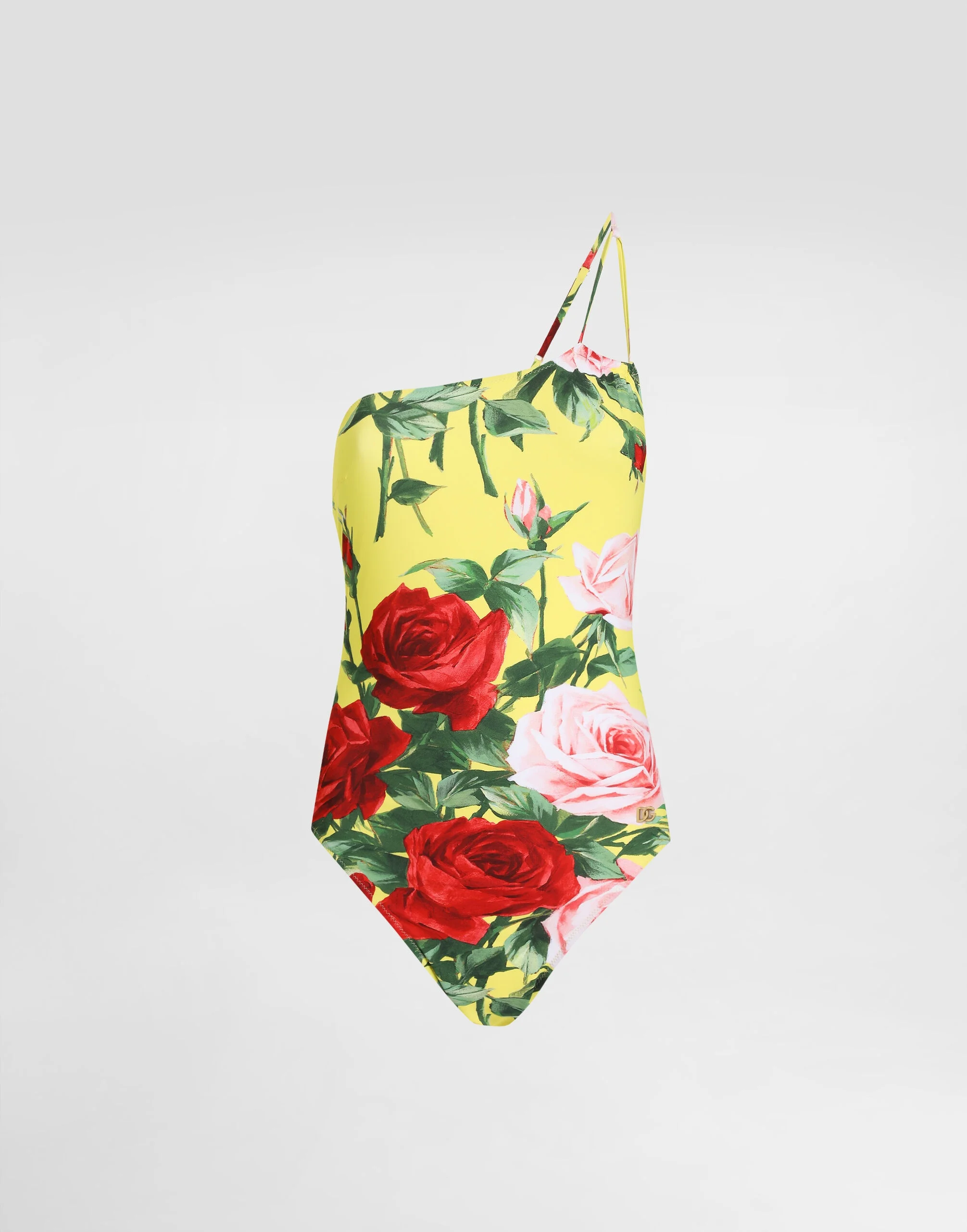 The Spring/Summer 2025 Warm Weather Collection is a vibrant ode to the beauty of the floral world, celebrating the elegance and vitality that lie at the heart of the brand’s DNA. Delicate, colorful bouquets dance across light dresses, skirts, trousers, and beachwear, infusing each piece with a sense of romance and freshness. Coordinated accessories, from scarves to headbands, add charm. An explosion of color and blooms, this collection captures the brand’s unmistakable spirit. One-shoulder one-piece swimsuit with floral bouquet print: • Multi-colored • Branded DG logo in nickel-free metal • Matching PVC pouch • Made in Italy The difference in the print placement that you may find on this product is a feature of Dolce&Gabbana’s “Handmade” pieces. A detail that makes every garment or accessory unique and exclusive. External composition: 72% Polyamide 28% Spandex Internal composition: 88% Polyamide 12% Spandex