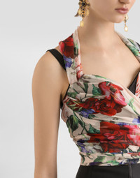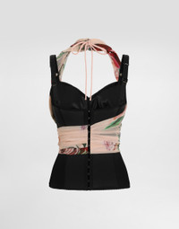 The Spring/Summer 2025 Women’s Collection is celebrating Italian beauty through bold and charismatic femininity. The 50s-inspired lingerie is the star, intermingling with fitted dresses, corsets and oversize trench coats. The iconic jackets have been updated with cropped cuts and modern inserts, while the floral prints add a romantic edge. The eveningwear shines with light fabrics and crystals, accompanied by look-defining accessories, from iconic bags to the cross earrings. Marquisette, satin and chiffon corset top with floral print: • Multi-colored • Sweetheart neckline • Sleeveless with stretch straps • Lined • Elasticated marquisette on the back • Hook-and-eye fastening on the back • The model is 175 cm tall and wears a size IT 40 • Made in Italy The difference in the print placement that you may find on this product is a feature of Dolce&Gabbana’s “Handmade” pieces. A detail that makes every garment or accessory unique and exclusive. External composition: 40% Silk 34% Polyamide 20% Polyester 6% Spandex Internal composition: 100% Cotton