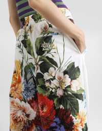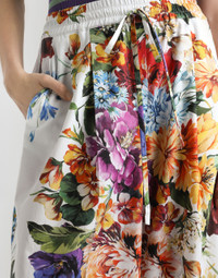 Flower bouquet-print poplin trousers