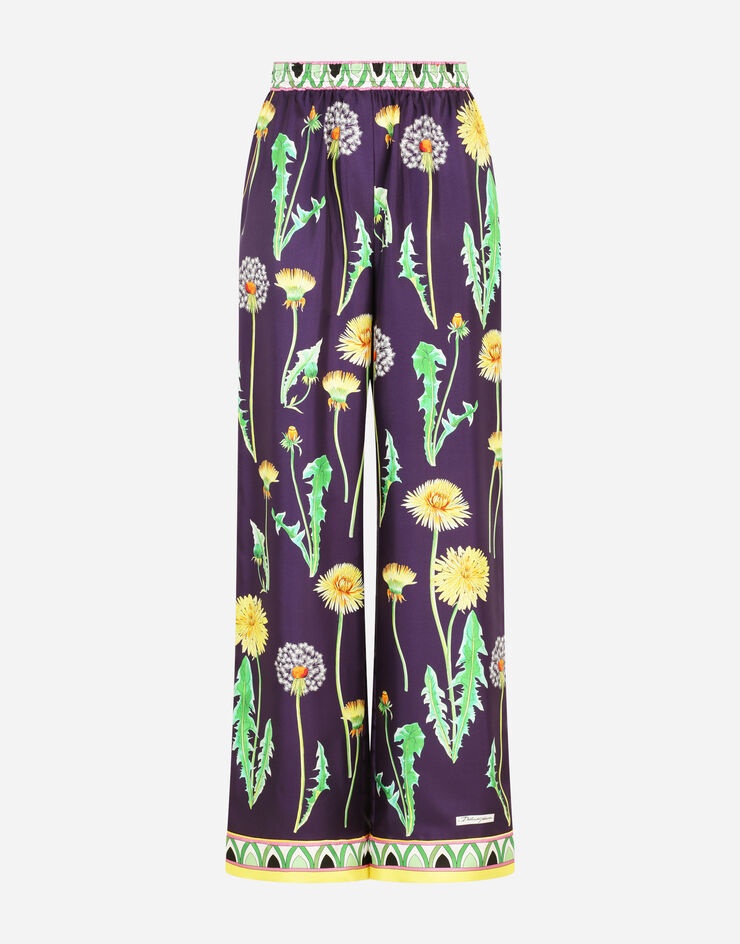 These pajama pants in silk twill are a timeless, iconic garment from Dolce&Gabbana. In the Renaissance line they feature a floral pattern that exudes an elegant, sophisticated feel in an updated and modern take on feminine beauty: • Stretch Dolce high waist • Slant front pockets • Inner leg: 79 cm - 31.1 inches • Hem: 30.4 cm - 12 inches • The model is 175 cm - 68.9 inches tall and wears a size IT 40 • Made in Italy Care And Details External composition: 100% Silk