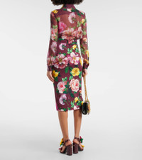 Floral silk-blend charmeuse midi skirt