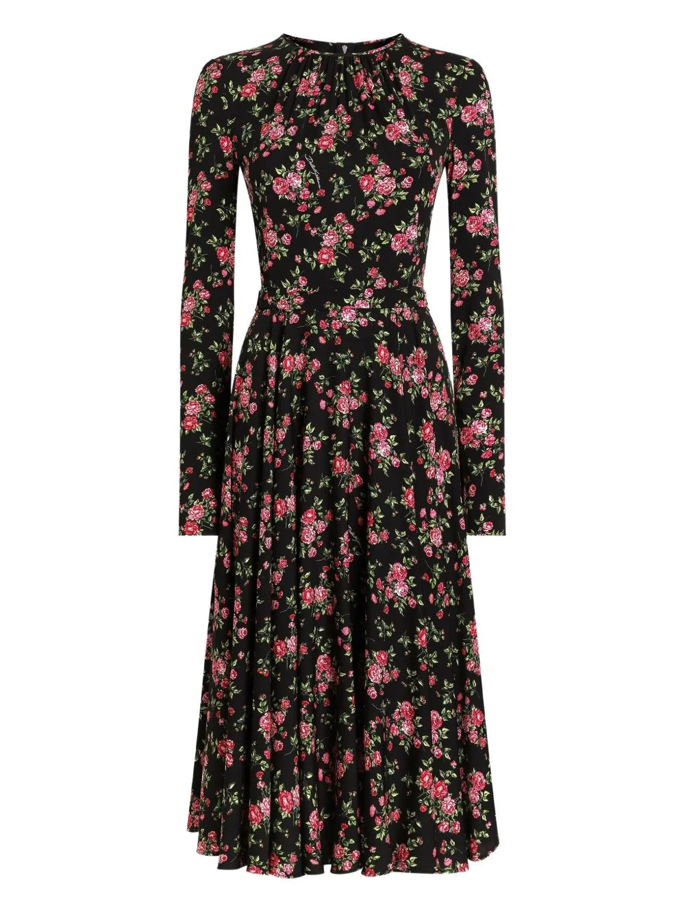floral long-sleeve midi dress Highlights - Black - Floral print - Long sleeves - Round neck Made in Italy Composition Outer: Silk 94%, Elastane 6% Lining: Silk 91%, Elastane 9% Washing instructions Read Manufacturer Guidelines