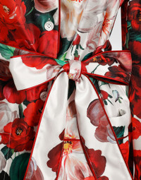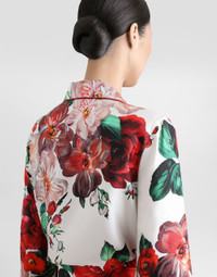 The Spring/Summer 2025 Women’s Collection is celebrating Italian beauty through bold and charismatic femininity. The 50s-inspired lingerie is the star, intermingling with fitted dresses, corsets and oversize trench coats. The iconic jackets have been updated with cropped cuts and modern inserts, while the floral prints add a romantic edge. The eveningwear shines with light fabrics and crystals, accompanied by look-defining accessories, from iconic bags to the cross earrings. Long-sleeved twill pajama shirt with rose print: • Multi-colored • Notched lapel collar • Long sleeves • Patch pockets • Regular fit • Button fastenings with branded bottom edge and silk twill belt • The piece measures 75 cm from the back of the neck on a size IT 40 • The model is 175 cm tall and wears a size IT 40 • Made in Italy The difference in the print placement that you may find on this product is a feature of Dolce&Gabbana’s “Handmade” pieces. A detail that makes every garment or accessory unique and exclusive. External composition: 100% Silk