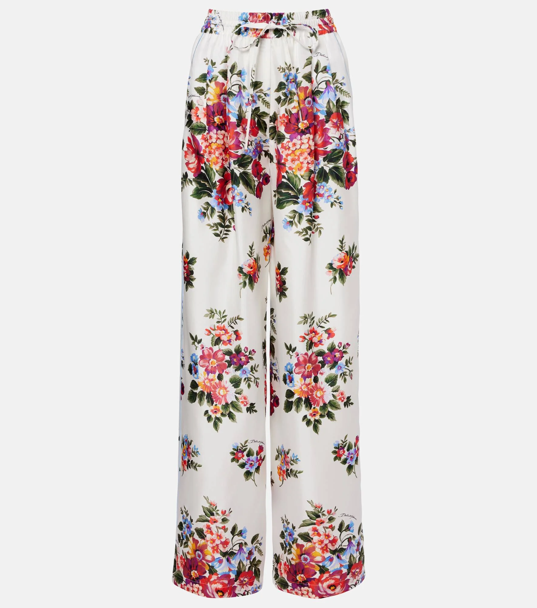 Sicilian culture is on display in Dolce&Gabbana's aesthetic, with bold styles inspired by the brand's Italian heritage. These wide-leg pants are Italian-made from pure silk and showcase a colorful floral print. Product Details - Material: 100% silk - Care instructions: dry clean - Made in Italy - Color: multicoloured - Designer color name: Mazz. Fiori F.Bianco - Elasticated drawstring waist - Pockets: slant pockets - Item number: P01122853 Size & Fit - True to size - Elasticated waist - Adjustable at the waist - Non-stretchy fabric - Wide-leg - High-waisted - The model seen in the picture is 178cm-5'10" and wearing a size IT 40