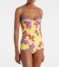 Sicilian culture is at the heart of Dolce&Gabbana's aesthetic, which attributes most of its bold styles to its Italian heritage. This swimsuit features a vibrant floral print and colorful trims on a sweetheart neckline. Product Details - Material: 74% nylon, 26% elastane - Care instructions: hand wash - Made in Italy - Designer color name: Multicolor - Item color: multicolor - Built-in bustier - Closure: hook-fastening back - Adjustable shoulder straps - Item number: P01061574 Size & Fit - True to size - Padded, underwired top - Low-cut leg - If you wear an A cup, we recommend trying one size smaller - The model seen in the picture is 178cm-5'10" and wearing a size 1