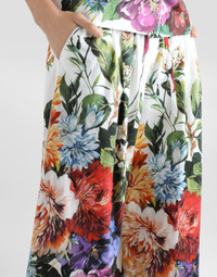 These baggy poplin trousers are a versatile and chic piece that is perfect for adding a floral touch to your summer wardrobe. Poplin trousers with flower bouquet print: • Multi-coloured • Classic waist with 5.3 cm high belt with elastic and drawstring • Two pleats at the front waist • French slant pockets and welt pockets in the back • Piping for front and hip pocket • Bottom width 34 cm on size 40 IT • The model is 175 cm tall and wears size 40 IT • Made in Italy The difference in the print placement that you may find on this product is a feature of Dolce&Gabbana’s “Handmade” pieces. A detail that makes every garment or accessory unique and exclusive. External Composition: 100% Cotton