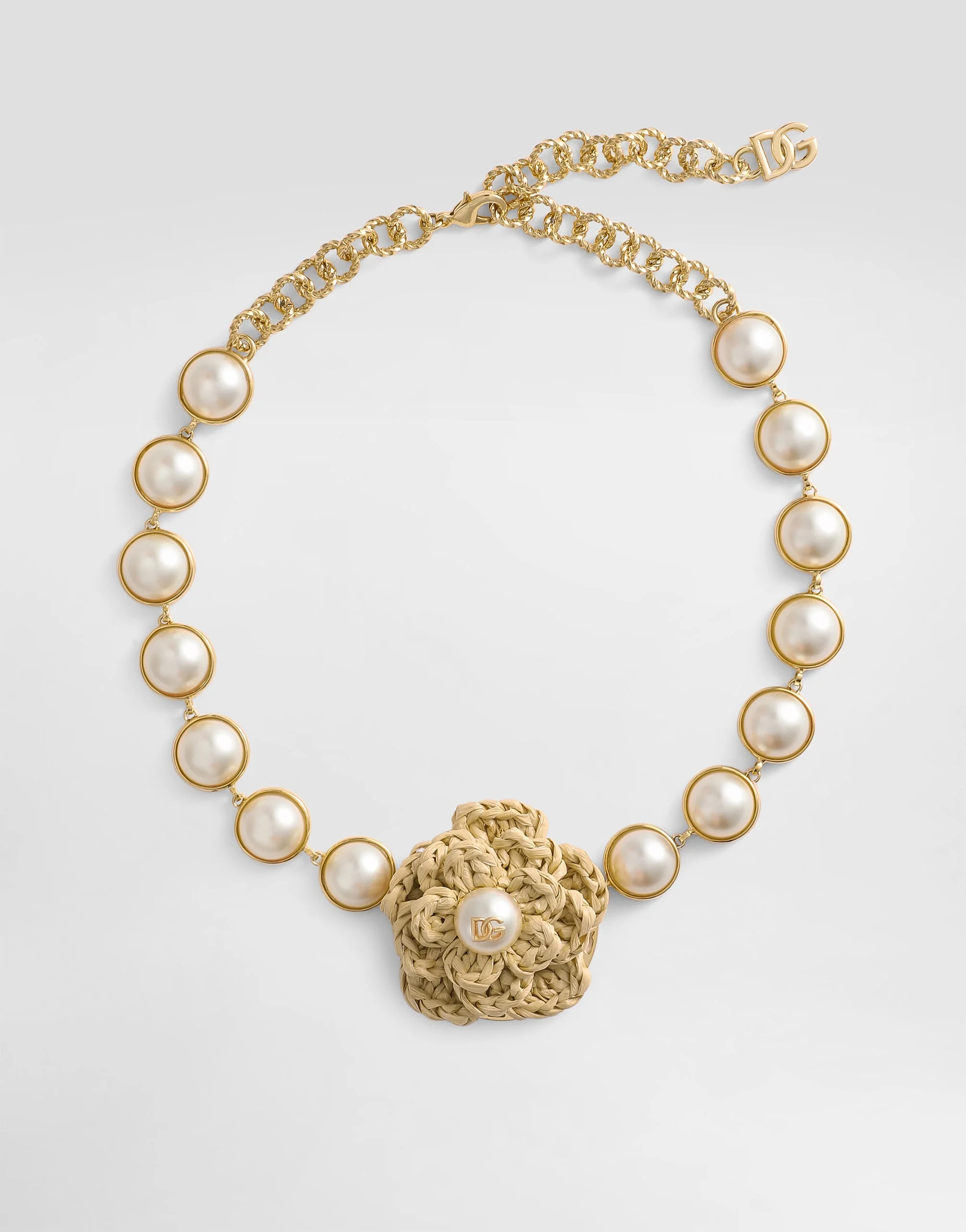 The flower necklace, an accessory that enhances beauty and elegance, perfect for adding a touch of sophistication to your outfits. flower necklace: • Gold • Length 50 cm • Item equipped with logoed box • Made in Italy External Composition: 50% Brass, 30% Plexiglass, 20% Viscose