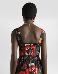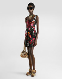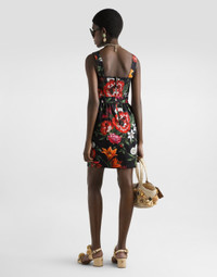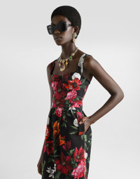 This dress in stretch wall fabric with flowers print is the perfect choice for those who want an elegant and sophisticated look. Perfect for special evenings, it combines a modern design with classic details, offering an ideal balance between style and comfort. Dress with flower print: • Multi-coloured • Fitted corset with cups • Wide shoulder strap • Gathered skirt at the waist, length 50 cm on size 40 IT • Welt pockets inserted in the side • Zip opening in the center back covered • Lined, no lining in the back bodice • The model is 175 cm tall and wears size 40 IT • Made in Italy The difference in the print placement that you may find on this product is a feature of Dolce&Gabbana’s “Handmade” pieces. A detail that makes every garment or accessory unique and exclusive. External Composition: 48% Cotton, 48% Viscose, 2% Elastane, 2% Polyamide Internal Composition: 91% Silk, 9% Elastane