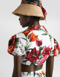 This shirt is a perfect example of elegance and versatility, ideal for adding a touch of floral style to your wardrobe. Poplin shirt with flower print: • Multi-coloured • Short sleeves • Tie bow at the front • Closure with buttons • Vertical darts on the back • Elastic inserted • The model is 175 cm tall and wears size 40 IT • Made in Italy The difference in the print placement that you may find on this product is a feature of Dolce&Gabbana’s “Handmade” pieces. A detail that makes every garment or accessory unique and exclusive. External Composition: 100% Cotton