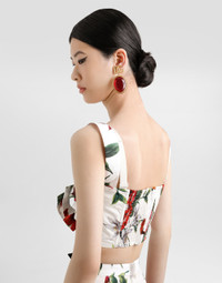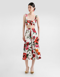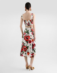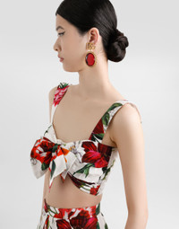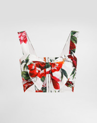 A top that combines elegance and freshness with a vibrant flowers print, perfect for a sophisticated summer look. Poplin bra top with flowers print: • Multi-coloured • With straps • Double bow at center front • Elasticated bodice with smocking stitch • Zip at center back • Lined • The model is 175 cm tall and wears size 40 IT • Made in Italy The difference in the print placement that you may find on this product is a feature of Dolce&Gabbana’s “Handmade” pieces. A detail that makes every garment or accessory unique and exclusive. External Composition: 100% Cotton Internal Composition: 97% Cotton + 3% Elastane