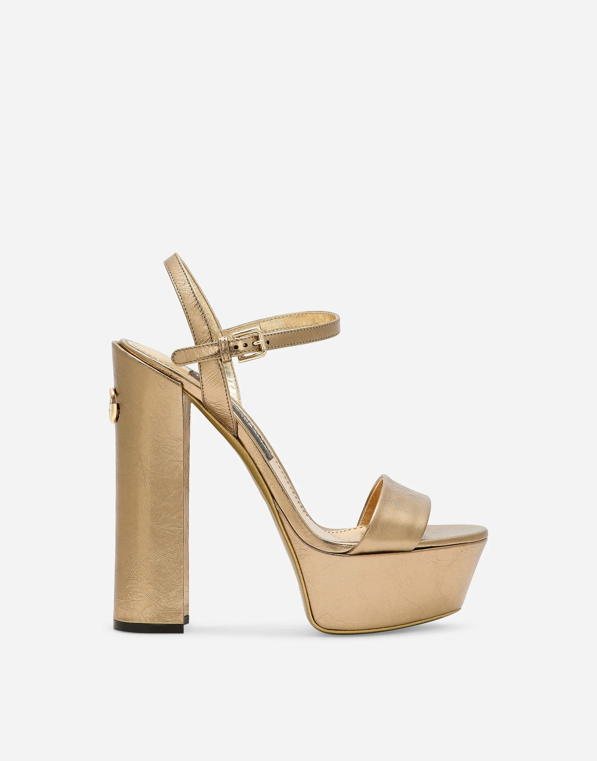 Foiled craquelé calfskin platform sandals: • Gold • 105-mm platform • Foiled kidskin insole with branded label • Branded leather sole • Item comes with a branded dust bag • Made in Italy Care And Details External composition: 100% Calfskin Internal composition: 90% Goatskin 10% Calfskin