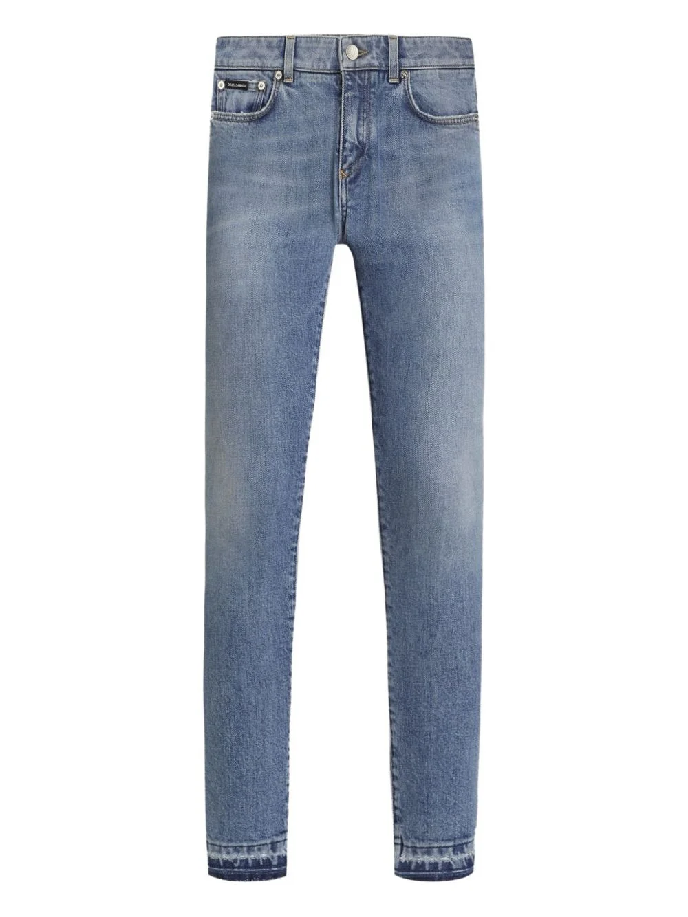 frayed-hem jeans Highlights - Light blue - Frayed hem - Five pockets - Belt loops - Zip fly - Button fastening Made in Italy Composition Cotton 98%, Elastane 2% Washing instructions Read Manufacturer Guidelines