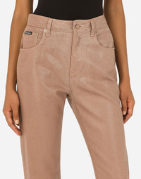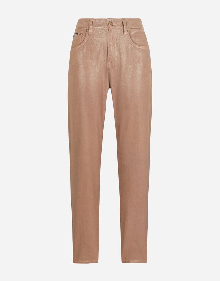 In the Foundation line, Dolce&Gabbana conveys a sophisticated and sensual world where women let their personalities shine through. A warm, soft color palette highlights feminine beauty in its entirety. These comfortable-fit boyfriend jeans come with a warm hazelnut-brown coated finish, making them perfect for a glamorous and contemporary look: • Low rise • 5 pockets • Branded metal and leather plate • Branded label on the coin pocket • Inner leg: 75 cm - 29.5 inches • Hem: 18 cm - 7.1 inches • Metal button with logo and zipper • The model is 175 cm - 68.9 inches tall and wears a size IT 40 • Made in Italy Care And Details External composition: 100% Cotton