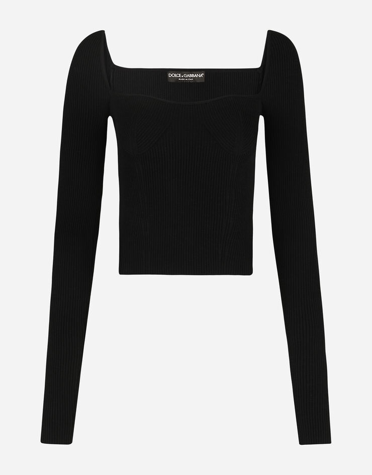• 18-gauge knit • Square sweetheart neckline • Long sleeves • Slim fit • The piece measures 43 cm - 16.9 inches from the rear collar seam on a size IT 40 • The model is 175 cm - 68.9 inches tall and wears a size IT 40 • Made in Italy Care And Details External composition: 71% Viscose 14% Polyester 12% Polyamide 03% Spandex