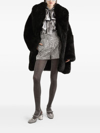 fur-effect coat Highlights - Black - Fur effect - Long sleeves Made in Italy Composition Outer: Modacrylic 91%, Polyester 9% Lining: Silk 83%, Polyester 10%, Elastane 7% SIZE & FIT Measurement LENGTH 34.25 in(87 cm) Washing instructions Read Manufacturer Guidelines