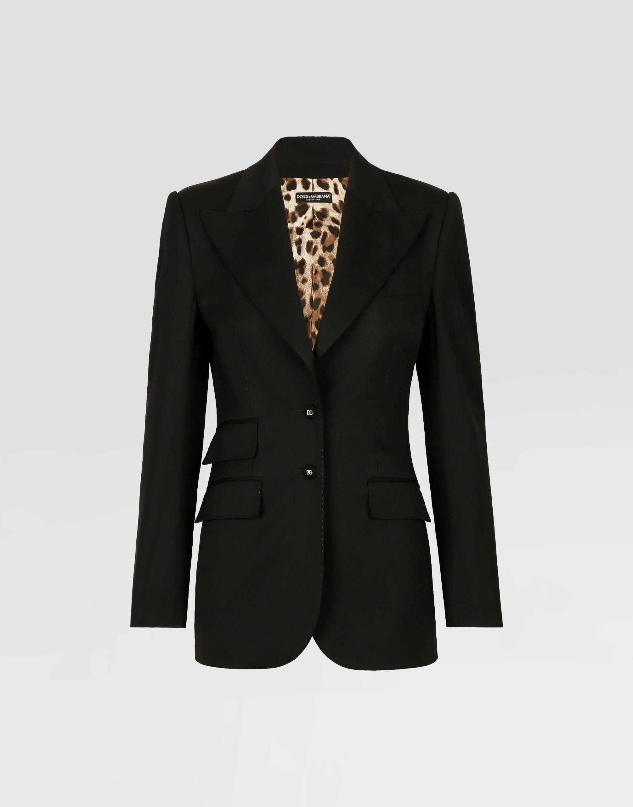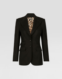 The DG Essential collection is a mix of iconic pieces that flaunt timeless and ageless feminine allure, the distinctive, unmistakable feature of the Dolce&Gabbana woman. Gabardine Turlington jacket with top-stitching: • Single-breasted • Peak lapels • Long sleeves • Double breast pocket • Flap pockets • Leopard-print stretch satin lining • Cannete-covered button fastenings with DG logo • The piece measures 70 cm from the rear collar seam on a size IT 40 • The model is 175 cm tall and wears a size IT 40 • Made in Italy External composition: 97% Virgin Wool 3% Spandex Internal composition: 97% Polyester 3% Spandex