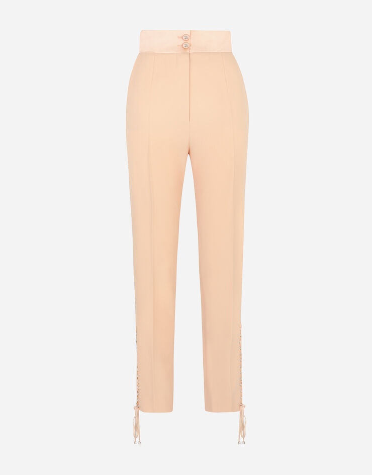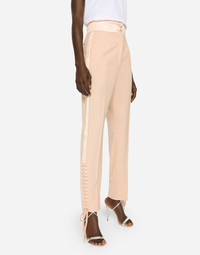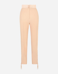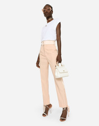 • Dolce high waist • Slant front pockets • Welt pockets with satin piping • Inner leg. 74 cm - 29.1 inches • Hem. 17 cm - 6.7 inches • Zipper and button fastenings covered in duchesse silk with DG logo • The model is 175 cm - 68.9 inches tall and wears a size IT 40 • Made in Italy Care And Details External composition: 47% Polyester 34% Virgin Wool 16% Silk 03% Spandex