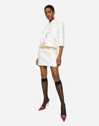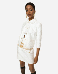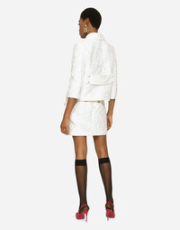 Gabbana brocade jacket with decorative DG buttons: • White • Baby collar • 3/4 sleeves • Boxy fit • Patch pockets with flap and branded buttons • Stretch satin lining • Press-stud buttons at front • The piece measures cm from the back of the neck on a size IT 40 • The model is 175 cm tall and wears a size IT 40 • Made in Italy Care And Details External composition: 67% Polyester 25% Polyamide 8% Silk Internal composition: 92% Silk 8% Spandex