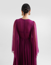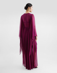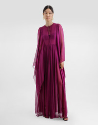 The Spring/Summer 2025 Warm Weather Collection is a vibrant ode to the beauty of the floral world, celebrating the elegance and vitality that lie at the heart of the brand’s DNA. Delicate, colorful bouquets dance across light dresses, skirts, trousers, and beachwear, infusing each piece with a sense of romance and freshness. Coordinated accessories, from scarves to headbands, add charm. An explosion of color and blooms, this collection captures the brand’s unmistakable spirit. Long silk chiffon caftan: • Burgundy • Round neck • Dart on waist • Wide butterfly sleeves • Unlined • Rear zipper and hook-and-bar fastening • The piece measures 120 cm from the waist down below the drawstring on a size IT 40 • The model is 175 cm tall and wears a size IT 40 • Made in Italy External composition: 100% Silk Internal composition: 100% Silk