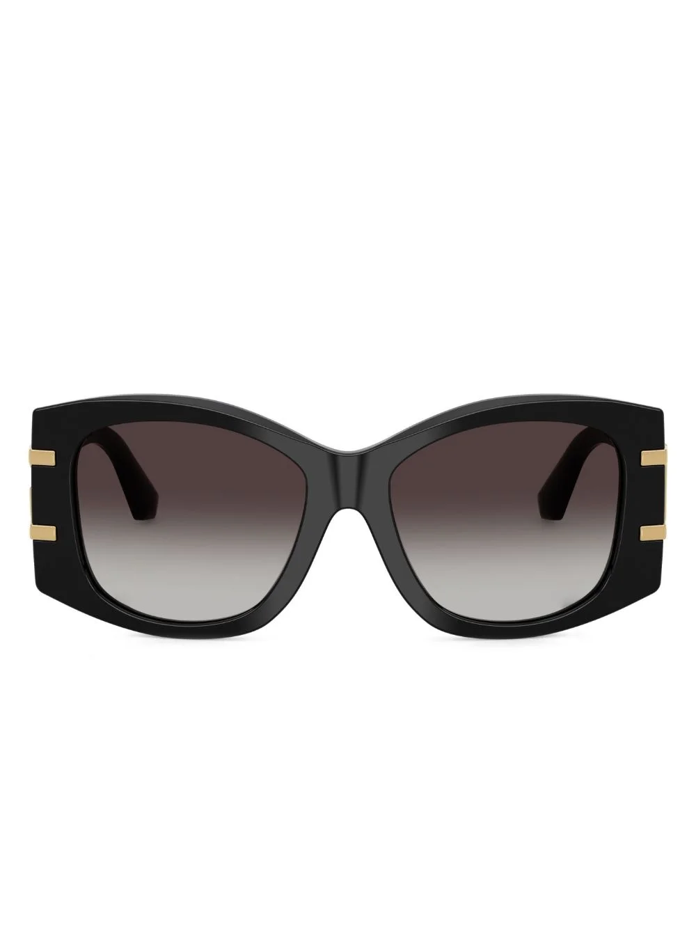 geometric-frame sunglasses Highlights - Black - Logo plaque at the arm - Oversize arms - These glasses come with a protective case. Made in Italy Composition Acetate 100% SIZE & FIT Measurement Arm Length 5.7 in(14.5 cm) Bridge Width 0.66 in(1.7 cm) Lens Diameter 2.12 in(5.4 cm)
