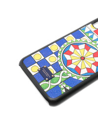 geometric-pattern phone case Highlights - Black - Geometric pattern - Central floral motif - Logo plaque - Hard case Made in Italy Composition Leather 100%