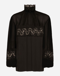 Georgette and lace turtle-neck blouse