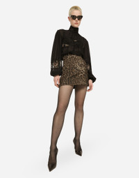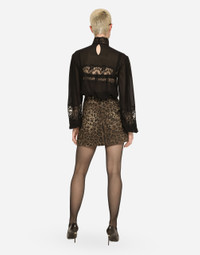 Silk georgette turtle-neck blouse with floral lace inserts: • Black • High neck • Long puff sleeves with cuffs • Regular fit • Unlined • Keyhole fastening at the back with small press-stud buttons • The piece measures 70 cm from the center back on a size IT 40 • The model is 175 cm tall and wears a size IT 40 • Made in Italy Care And Details External composition: 100% Silk