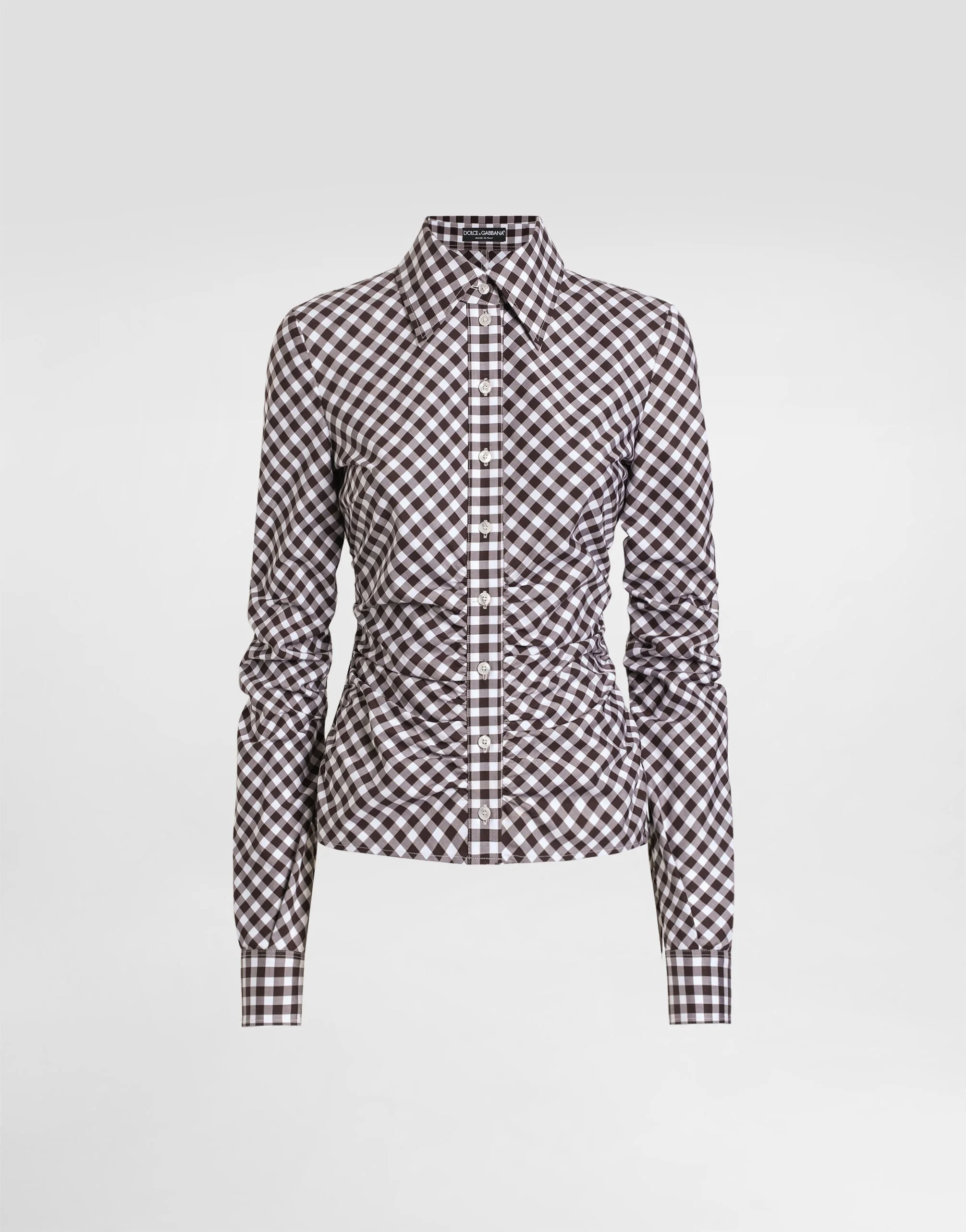 This cotton check twill shirt combines elegance and comfort, ideal for a sophisticated and modern look. Cotton twill check shirt: • Multi-colored • Pleated bust and gatherer motif in the center front • Gatherer details in front flanks and sleeve cuts • The model is 175 cm tall and wears size 40 IT • Made in Italy External Composition: 100% Cotton