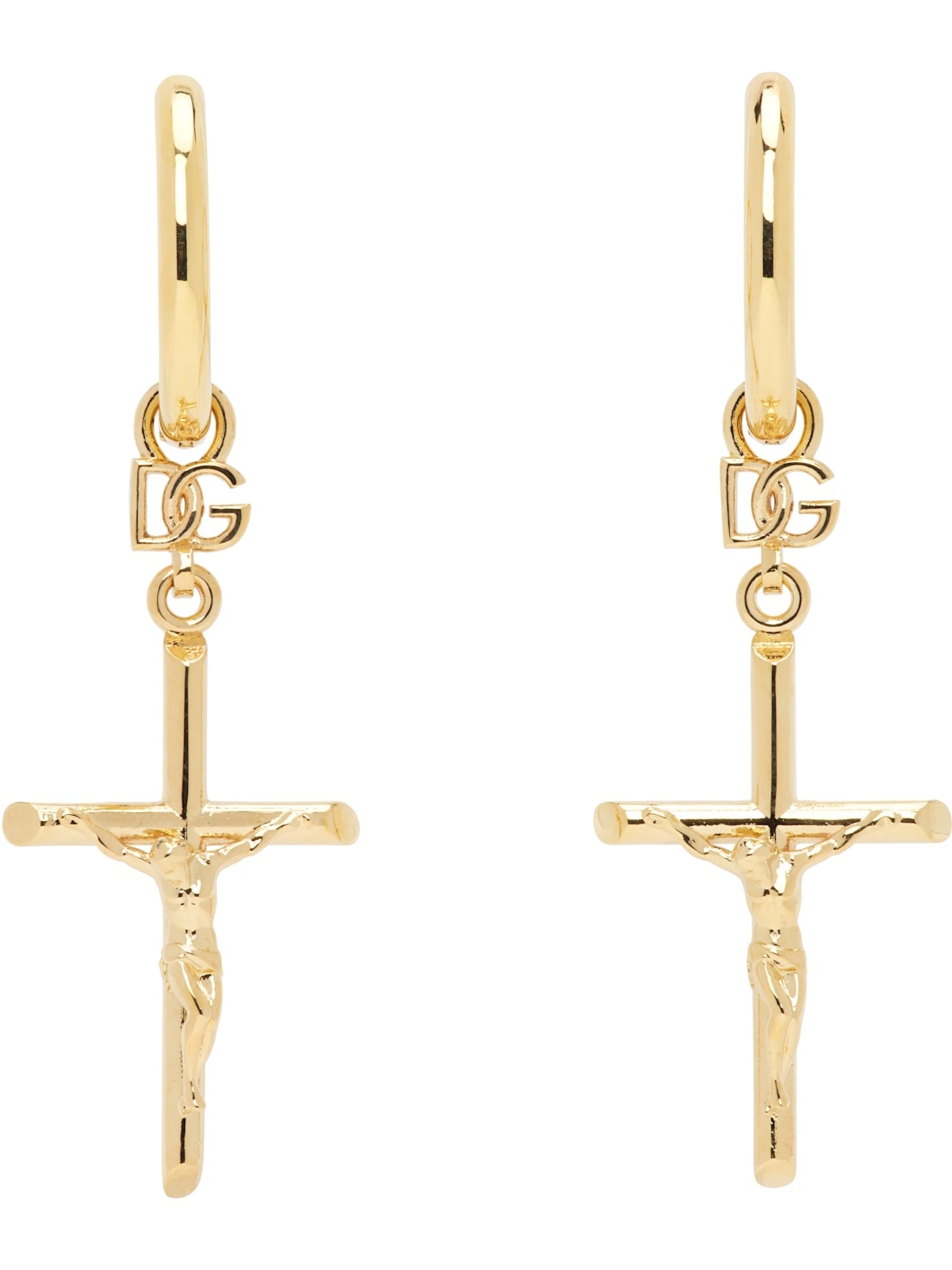 Pair of hoop earrings in gold-tone brass. - Logo and graphic charm at hoop - Hinged-post fastening - H2 x D0.75 Supplier color: Gold