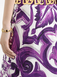 graphic-print midi skirt Highlights - Lavender purple - Front button fastening - Belt loops - Straight hem - Mid-length Made in Italy Composition Outer: Cotton 48%, Viscose 48%, Polyamide 2%, Elastane 2% Lining: Silk 91%, Elastane 9% Washing instructions Read Manufacturer Guidelines