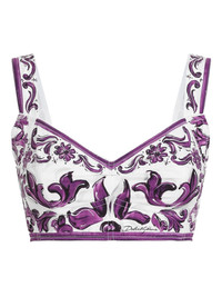 graphic-print top Highlights - White - Rear hook fastening - Wide shoulder straps - Sweetheart neck - Cropped Made in Italy Composition Outer: Cotton 70%, Polyamide 24%, Elastane 6% Lining: Cotton 100% Washing instructions Read Manufacturer Guidelines