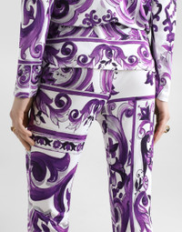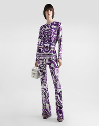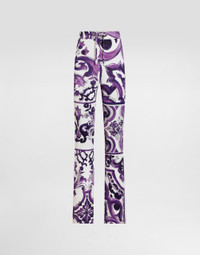 These flared organzine trousers with Majolica print combine elegance and comfort, perfect for adding a touch of unique style to your wardrobe. Flared trousers with Majolica print: • Multi-coloured • Regular waist with 5.3 cm high belt and internal elastic • Drawstring • Center back length 89 cm on size 40 IT • The model is 175 cm tall and wears size 40 IT • Made in Italy The difference in the print placement that you may find on this product is a feature of Dolce&Gabbana’s “Handmade” pieces. A detail that makes every garment or accessory unique and exclusive. External Composition: 100% Viscose
