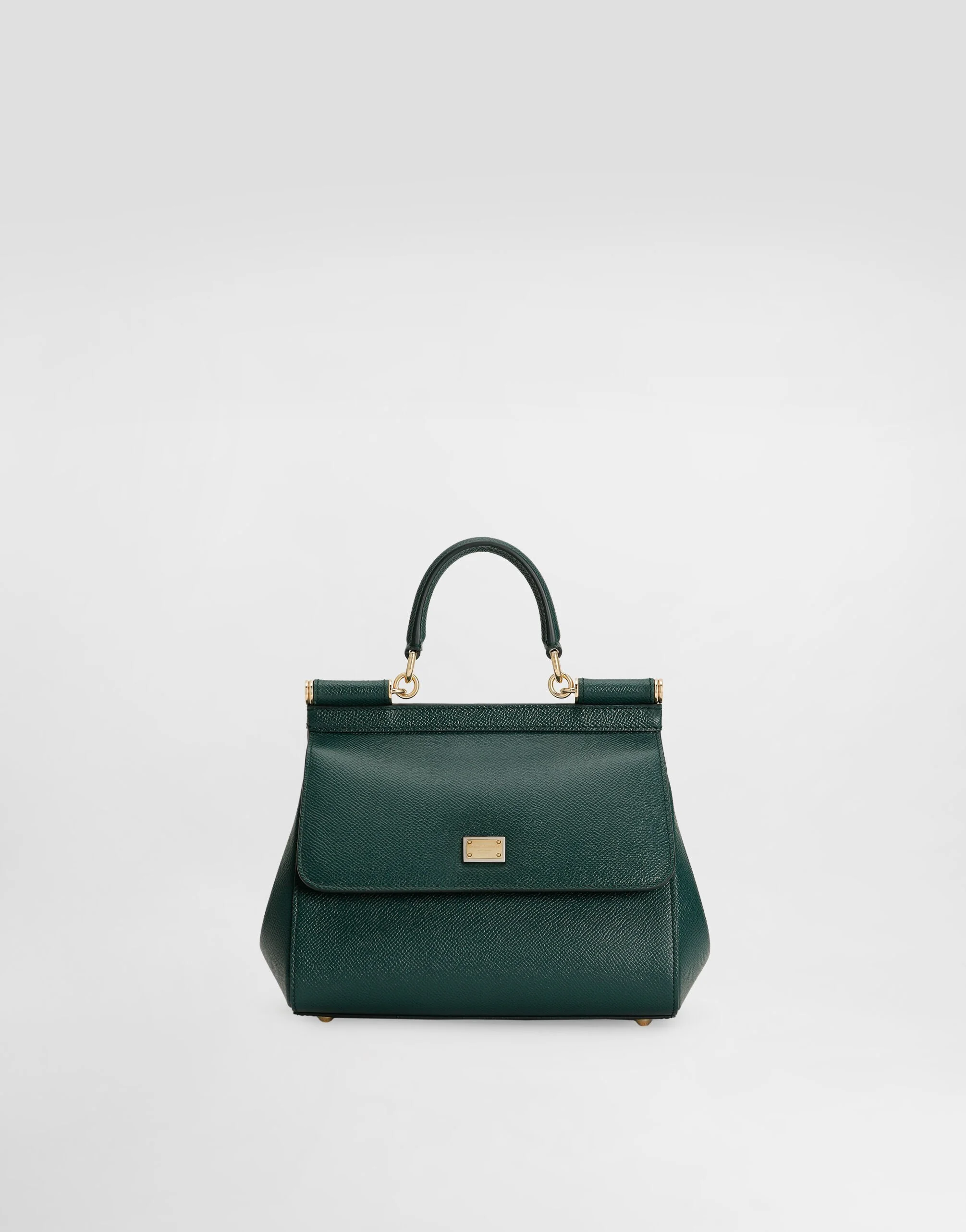 The brand icon par excellence this medium Sicily bag comes in Dauphine calfskin. Understated and feminine it comes with the logo tag featuring two metal plating finishes. Medium Sicily bag in Dauphine calfskin: • Green • Front flap with hidden double magnetic fastening • Logo tag featuring two metal plating finishes • Top handle and adjustable detachable strap in Dauphine calfskin • Printed fabric lining • Inner pocket with branded zipper and a cell phone holder • Metal feet studs on the base • Item comes with a branded dust bag • Measurements: H18.5 x W20 x D10 cm • Made in Italy External Composition: 100% Calfskin Internal Composition: 90% Cotton 10% Calfskin