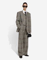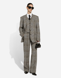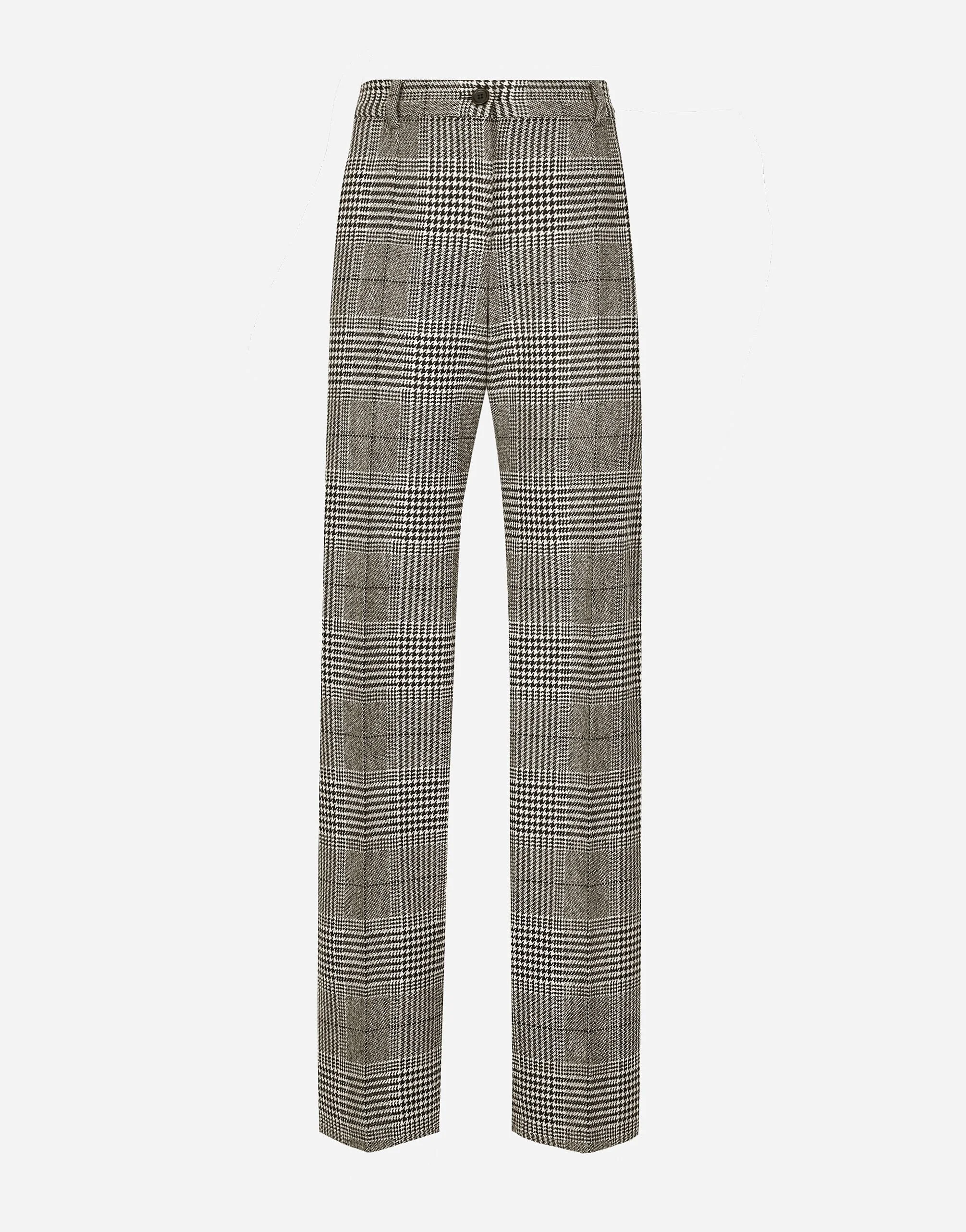 Inspired by 80s fashion photography, the Black Sicily collection masterfully blends masculine and feminine elements, pairing tailored cuts and corset details for the FW 24/25 season. A new vision of the iconic Nero Sicilia black is conveyed through contemporary and sensual looks: jackets and skirts in all-over glen plaid pair with openwork socks, while the 50s-inspired Mun shoes with Eva heel go with the houndstooth Sicily bag featuring crocodile-print leather inserts. Wool and cashmere glen plaid pants: • Glen plaid • High-waisted • Front slant pockets • Welt pockets on the rear • Belt loops • Inner leg: 85 cm • Hem: 34 cm • Concealed front zipper and button fastening • The model is 175 cm tall and wears a size IT 40 • Made in Italy External composition: 90% Wool 10% Cashmere