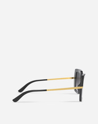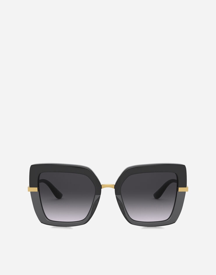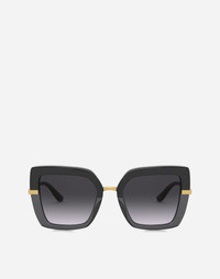 • Top black on transparent black acetate frame • Gold metal temples • Smoke gradient lenses • 100% UV protection • Size lens - bridge - temple: 52 - 21 - 140 mm • Fitting: Universal • Packaging: Institutional • Made in Italy