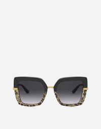Clean lines for the reinterpretation of the iconic Print Family theme. • Top black on leopard print acetate frame • Gold metal temples • Smoke gradient lenses • 100% UV protection • Size lens - bridge - temple: 52 - 21 - 140 mm • Fitting: Universal • This item comes with a special packaging • Made in Italy