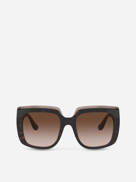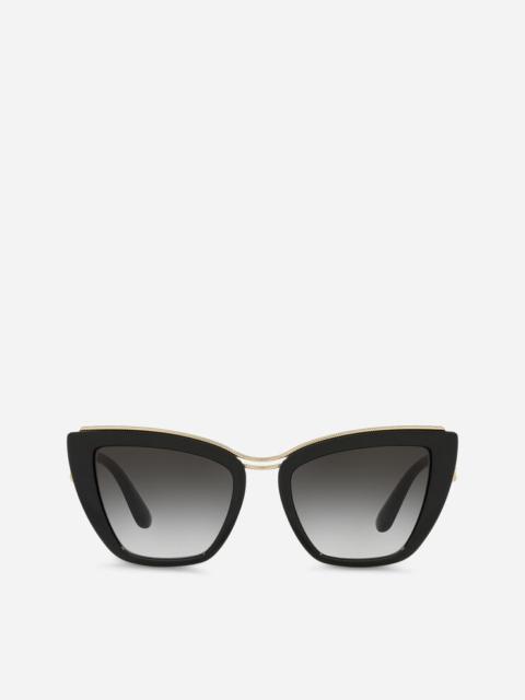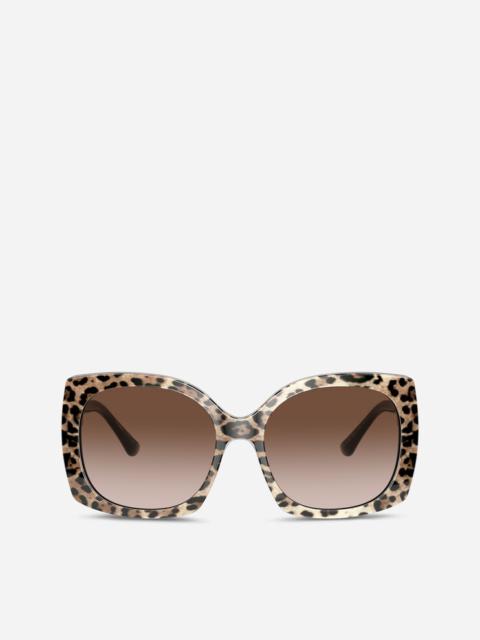 • Top black on leopard print acetate frame • Gold metal temples • Smoke gradient lenses • 100% UV protection • Size lens - bridge - temple: 52 - 21 - 140 mm • Fitting: Universal • This item comes with a special packaging • Made in Italy