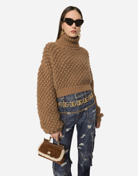 Hazelnut-stitch alpaca turtle-neck sweater