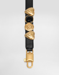 This elegant calfskin shoulder strap is the perfect accessory to add a touch of class to your everyday look. Calfskin shoulder strap: • Black • Vintage brass plating • External customization with metal crossed DG logo • Internal customization with fire stamp • Item equipped with a logo bag and a logoed box • Length 59 cm • Made in Italy External Composition: 100% Calf Leather