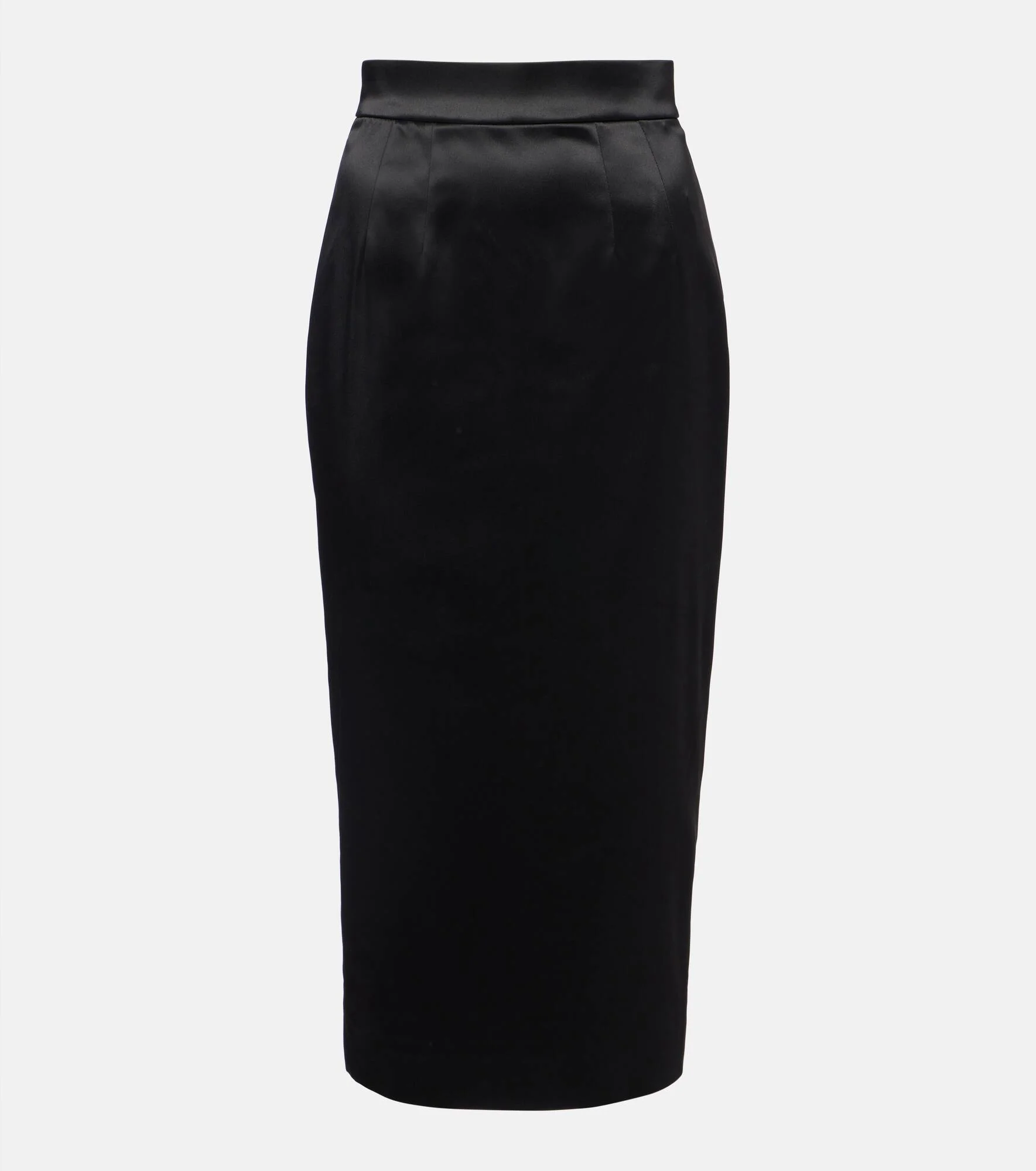 Sicilian culture is on display in Dolce&Gabbana's aesthetic, with bold styles inspired by the brand's Italian heritage. This pencil skirt is crafted from satin and features a high-rise waistline and a center-back short vent. Product Details - Material: 65% acetate, 29% polyamide, 6% elastane - Care instructions: dry clean - Made in Italy - Designer color name: Nero - Item color: black - Lining: 92% silk, 8% elastane - Closure: concealed zipped back - Short vent - Item number: P01106953 Size & Fit - True to size - Slightly stretchy fabric - High-waisted - slit length 30,0cm-12" - The model seen in the picture is 178cm-5'10" and wearing a size IT 40