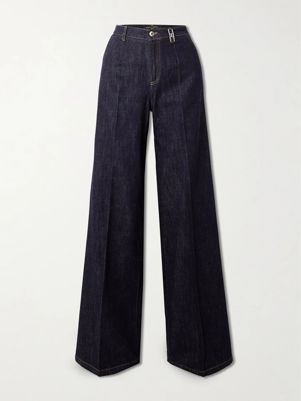 Dolce & Gabbana's jeans have a high-rise, wide-leg shape reminiscent of retro styles. They're made from pure denim and feature a silver-tone logo threaded through a belt loop.