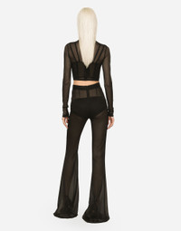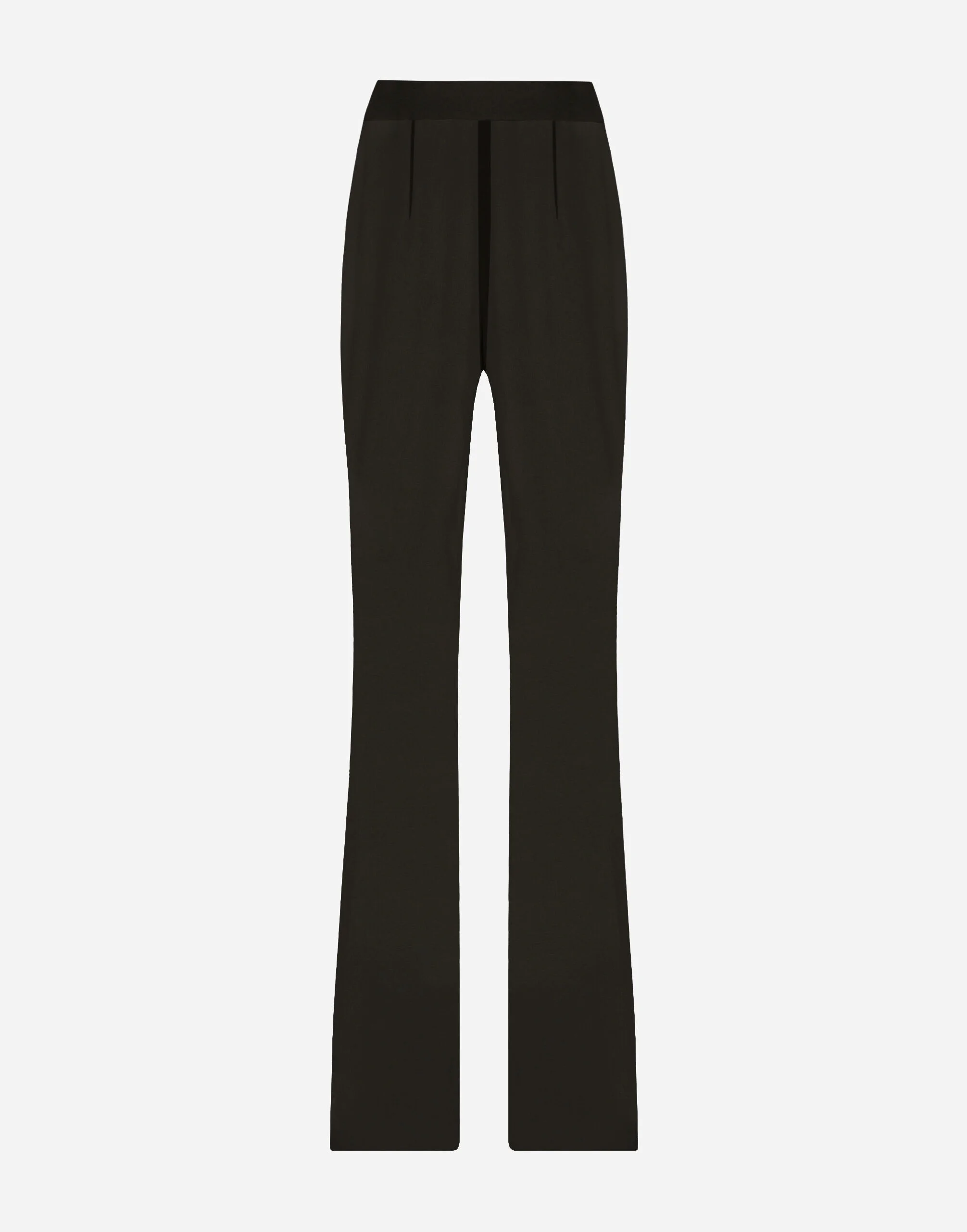 High-waisted flared silk chiffon pants: • Black • Branded stretch Dolce high waist • Inner leg: 90 cm • Hem: 36 cm • Invisible zipper and hook-and-eye fastening on the back • The model is 175 cm tall and wears a size IT 40 • Made in Italy Care And Details External composition: 92% Silk 8% Spandex