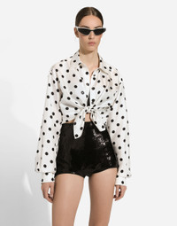 The FW24/25 Mambo Collection is rewriting the rules of Italian elegance, merging the sophisticated style of the 1940s and 1950s with the iconography of American pin-ups. The unmistakable polka-dot motif takes center stage, coming in a variety of shapes and sizes and adorning tulle, charmeuse, twill, silk and poplin, giving life to looks distinguished by black and white accessories and details. An homage to the beauty of Italy and its traditions, the distinctive details of Dolce&Gabbana’s creations. High-waisted sequined briefs: • Black • High-waisted • Stretch marquisette back • Zipper fastening at the back • The model is 175 cm tall and wears a size IT 40 • Made in Italy External composition: 80% Polyester 17% Polyamide 03% Spandex Internal composition: 74% Silk 15% Polyamide 11% Spandex