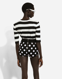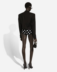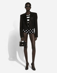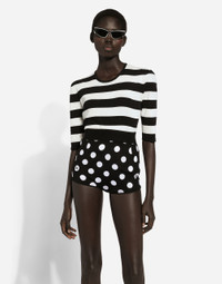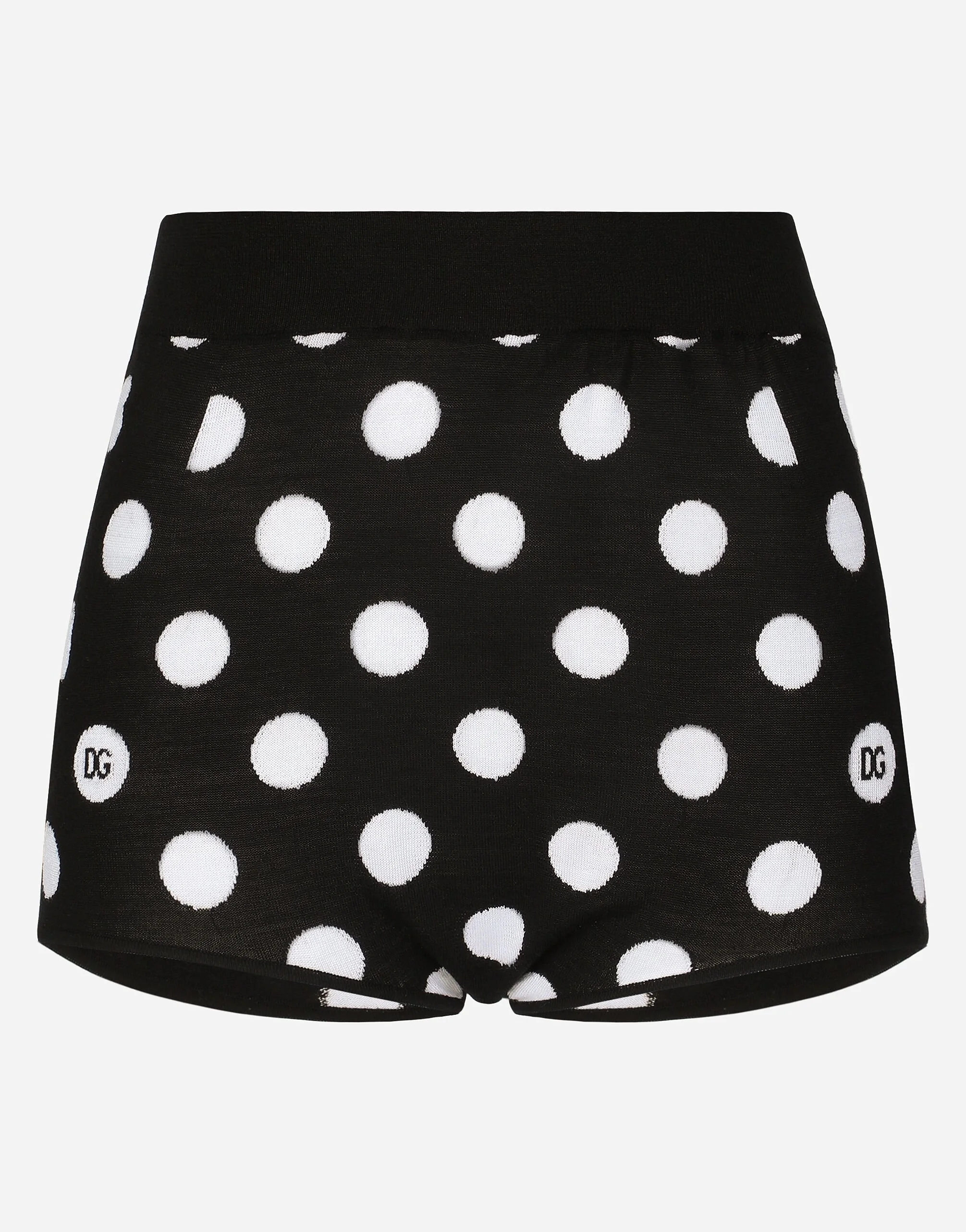 The FW24/25 Mambo Collection is rewriting the rules of Italian elegance, merging the sophisticated style of the 1940s and 1950s with the iconography of American pin-ups. The unmistakable polka-dot motif takes center stage, coming in a variety of shapes and sizes and adorning tulle, charmeuse, twill, silk and poplin, giving life to looks distinguished by black and white accessories and details. An homage to the beauty of Italy and its traditions, the distinctive details of Dolce&Gabbana’s creations. Wool and silk high-waisted panties with polka-dot inlay: • Black and White • 18-gauge knit • Form fitting • Back zipper fastening • The model is 175 cm tall and wears a size IT 40 • Made in Italy External composition: 58% Wool 42% Silk
